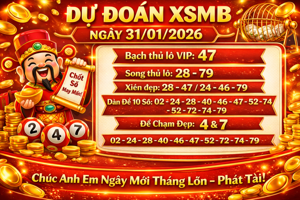 Chào anh em! Dựa vào thống kê lô tô 30 kỳ gần nhất, phân tích cầu chạy, lô gan – lô ra nhiều, kết hợp kinh nghiệm soi cầu, mình gửi tới anh em các chốt số đẹp XSMB ngày 31/01/2026 – hy vọng sẽ mang lại may mắn lớn cho anh em!